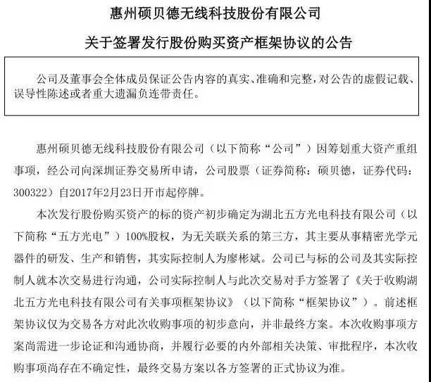 早在2017年上半年,手機(jī)報(bào)在線就曾報(bào)道過,據(jù)碩貝德發(fā)布公告稱,其將收購湖北五方光電科技有限公司(以下簡稱“五方光電”)100%股權(quán)。據(jù)手機(jī)報(bào)在線查詢得知,湖北五方科技有限公司投資了蘇州五方科技有限公司,同時(shí),又投資了蘇州五方材料有限公司。據(jù)業(yè)界人士稱,五方科技與五方材料同樣都是生產(chǎn)攝像頭用紅外截止濾光片。