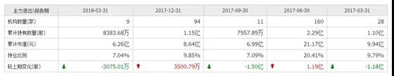 此外,從主力持倉機(jī)構(gòu)數(shù)量來看,從2017年中旬以后一直處于下降狀態(tài),截至2017年中旬,結(jié)構(gòu)數(shù)量為160家,當(dāng)時(shí)累計(jì)持有股份數(shù)量為2.29億股,累計(jì)市值為21.17億元,到了2017年12月,結(jié)構(gòu)數(shù)量下降到94家,累計(jì)持有數(shù)量為0.84億股,累計(jì)市值下跌到只有6.26億元!