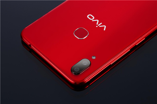 vivo X21i的背部左上角為豎排雙攝,雙攝像頭下方為閃光燈,中間靠上位置為金屬邊框包裹著的指紋模塊,可用于解鎖和支付。指紋模塊下為vivo的Logo,整體觀感上,背部的整體設計還是非常簡潔有序,看上去也十分和諧。