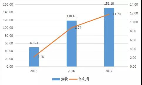從近三年?duì)I收情況來看,合力泰在2015年、2016年分別實(shí)現(xiàn)營(yíng)收49.53億元和118.45億元,歸屬于上市公司凈利潤(rùn)分別為2.18億元和8.74億元。由此可以看出,近年來,合力泰在業(yè)績(jī)方面的表現(xiàn)一年比一年亮眼,營(yíng)收與凈利潤(rùn)呈現(xiàn)“芝麻開花節(jié)節(jié)高”的增長(zhǎng)趨勢(shì)。