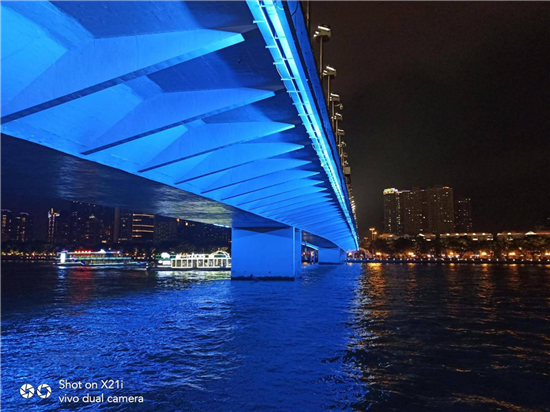 面對夜間較弱的光線以及復(fù)雜的光源,vivo X21i再次發(fā)揮出了F1.8的大光圈的優(yōu)勢,獲取了更多的進(jìn)光量,同時(shí)得益于AI智慧場景的智能優(yōu)化,即使在光線條件極差的橋底下,vivo X21i依舊拍出了江面波光凌凌的質(zhì)感細(xì)節(jié)。