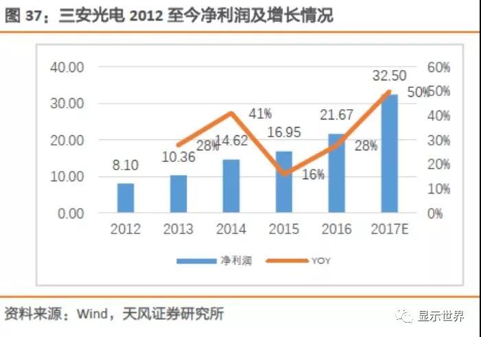 ?。?)三安作為全球的Led芯片的龍頭企業(yè),資本會更加向其集中。據(jù)LEDinside統(tǒng)計,三安光電在全球的市場占有率為17%,行業(yè)集中帶來的市場占有率提升將進一步明顯,預計未來達到40%的占有率。我們認為公司將充分享受市場占有率提升帶來的紅利。