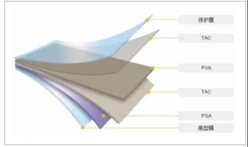 | 壓敏膠 | 與 TAC 有較好的粘附性,厚度一般為 20μm | 將偏光片貼合在 LCD 上,決定偏光片的黏著性能 |