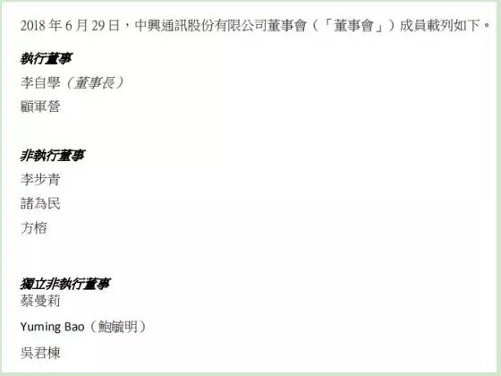 6月29日,中興通訊發(fā)布公告顯示,中興通訊完成了新一屆董事會的提名。8名新董事會成員分別是:李自學(xué)、諸為民、方榕、蔡曼莉、吳君棟、李步青、鮑毓明、顧軍營。
