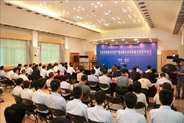 7月17日,中國(guó)電子彩虹集團(tuán)舉行正性光刻膠項(xiàng)目投產(chǎn)暨戰(zhàn)略合作會(huì)談備忘錄簽字儀式。中國(guó)電子彩虹集團(tuán)董事長(zhǎng)、黨委書記司云聰,默克中國(guó)董事長(zhǎng)、默克投資(中國(guó))有限公司總裁安高博分別致辭,咸陽(yáng)市副市長(zhǎng)張小平講話。彩虹集團(tuán)班子成員、彩虹新能源公司總經(jīng)理鄒昌福代表彩虹與默克公司簽訂戰(zhàn)略合作會(huì)談備忘錄。