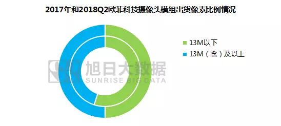 歐菲科技攝像頭出貨上漲,其出貨產(chǎn)品規(guī)格也有所升級,整體向高端化像素發(fā)展。根據(jù)旭日大數(shù)據(jù)統(tǒng)計,歐菲科技1300萬像素以上(含)出貨量占比就已高達(dá)50%,相比2017年歐菲科技攝像頭模組1300萬像素以上(含)全年出貨量占比高出5個百分點。