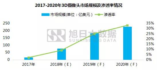 除了目前已發(fā)布搭載3D攝像頭的小米8探索版和OPPO的Find X之外,下半年各品牌也將陸續(xù)發(fā)布上市搭載3D攝像頭的旗艦機(jī)型。據(jù)旭日大數(shù)據(jù)了解,目前受限于國內(nèi)3D攝像頭技術(shù)不成熟,綜合良率不高等影響,2018年全球3D攝像頭在智能手機(jī)中的滲透率僅為9%,但其市場規(guī)模就已超過70億美元,預(yù)計到2020年市場規(guī)模將高達(dá)225億美元。