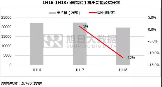 作為全球最大的智能手機(jī)市場,中國市場占據(jù)了全球市場三分之一的需求。今年上半年,由于手機(jī)升級(jí)換機(jī)潮結(jié)束,中國市場需求開始低迷,而換機(jī)周期拉長則進(jìn)一步加劇了市場需求的下滑。根據(jù)旭日大數(shù)據(jù)統(tǒng)計(jì),2018年上半年,中國智能手機(jī)市場出貨量不到2億部,同比下滑近12%,是全球市場下滑的主因。
