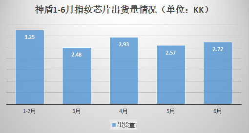 值得一提的,在指紋芯片出貨量方面,旭日大數(shù)據(jù)顯示,神盾一季度指紋芯片出貨量為5.73kk,此外,4、5、6月份出貨量分別為2.93kk、2.57kk和2.72kk,累計(jì)今年1-6月出貨量為13.95kk。