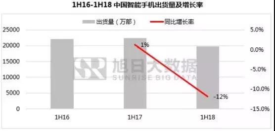 首先來看看2018年上半年智能手機市場情況,據(jù)旭日大數(shù)據(jù)顯示,今年一季度,全球手機出貨量同比下滑近9%,二季度雖有所回升,但同比漲幅不足3%。