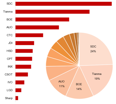 2018H1全球智能手機全面屏面板出貨排名及市占率