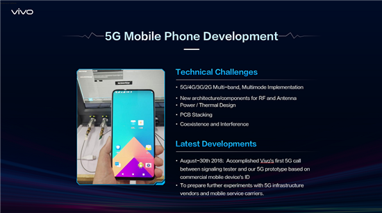 2018年,vivo正式啟動(dòng)5G終端試驗(yàn)樣機(jī)的研發(fā),并于今年8月成功實(shí)現(xiàn)vivo 5G First call成功調(diào)通,初步完成了面向商用的5G智能手機(jī)軟硬件開(kāi)發(fā)。在此基礎(chǔ)上,vivo計(jì)劃于12月實(shí)現(xiàn)基于移動(dòng)終端的5G通訊應(yīng)用展示。