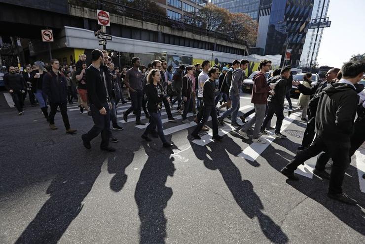 谷歌紐約一名經(jīng)理Phillip Schanely表示,大部分辦公室都有數(shù)千名員工參與抗議活動,幾乎所有辦公室都一致地離開辦公桌。