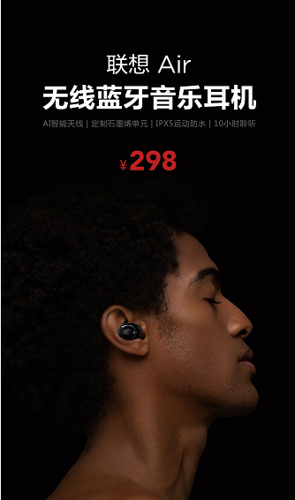 聯(lián)想Air無線藍(lán)牙音樂耳機(jī),售價298元,將于11月8日開啟首銷。