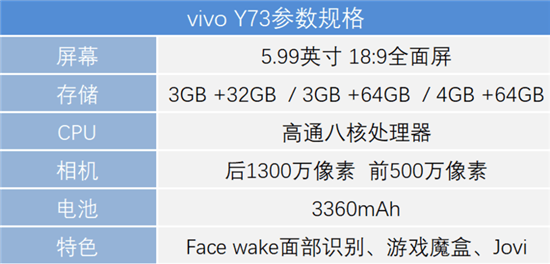 在開始體驗(yàn)之前,先來(lái)簡(jiǎn)單了解一下vivo Y73的基礎(chǔ)信息。單從賬面上來(lái)看,5.99寸全面屏、Face wake面部識(shí)別、全新的電競(jìng)模式2.0、AI美顏?zhàn)耘牡瓤袋c(diǎn)應(yīng)有盡有,對(duì)于一款僅售799元起的手機(jī)而言,確實(shí)可圈可點(diǎn)。