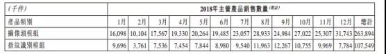 雖然丘鈦科技12月的指紋模組出貨量呈現(xiàn)下滑趨勢,不過公告數(shù)據(jù)顯示,丘鈦科技2018年全年指紋模組銷量高達1.08億件,而2017年指紋模組出貨量為8072.8萬件,由此可見,2018年公司指紋模組整體銷量較2017年有大幅增長。