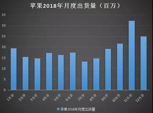 蘋果上下半年出貨量整體相差不大,1-9月份每個月出貨量基本上維持在1500萬部-2000萬部之間,在10月份發(fā)布的新機(jī)上市以后,出貨量明顯上漲,尤其是11月份出貨量更是超過了3000萬部的關(guān)卡,而12月份出貨量也達(dá)到了近2500萬。