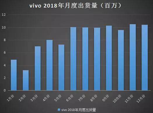 與OPPO極為類似的是vivo,從vivo 2018年上半年來看,其出貨量表現(xiàn)并不如意,但是從6月份開始,受益于海外市場的增長,促使vivo在下半年的表現(xiàn)十分不錯,每個月的出貨量都維持在1000萬部左右,如果vivo在第二季度表現(xiàn)更好點(diǎn)的話,vivo全年的出貨量恐怕與小米和OPPO不會有差距!