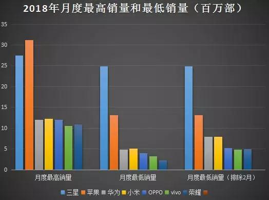 【月度最高銷量和最低銷量】三星穩(wěn)定,國產(chǎn)手機(jī)品牌差距大