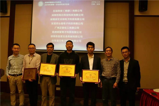 隨后,書(shū)記張定坤、格科微副會(huì)長(zhǎng)授牌協(xié)會(huì)32家新會(huì)員這一舉動(dòng)將會(huì)議拉入高潮。其中,新會(huì)員包括丘鈦科技(集團(tuán))有限公司、深圳市旭日偉業(yè)科技有限公司、深圳市艾貝特電子科技有限公司、東莞市臺(tái)易電子科技有限公司、廣州正普化工有限公司、蘇州昀冢電子科技有限公司、深圳市岳景五金機(jī)械有限公司、山東福日電子科技有限公司、深圳市漢獅精密自控技術(shù)有限公司、蘇州首鐳激光科技有限公司、深圳市鷹眼在線(xiàn)電子科技有限公司、深圳市勁拓自動(dòng)化設(shè)備股份有限公司、深圳市明信高分子科技有限公司、東莞觸點(diǎn)智能有限公司、深圳市深微智控有限公司、東莞市瑞昀光學(xué)電子科技有限公司、深圳市立可自動(dòng)化設(shè)備有限公司、深圳市艾特訊科技有限公司和深圳市崧茂科技有限公司。