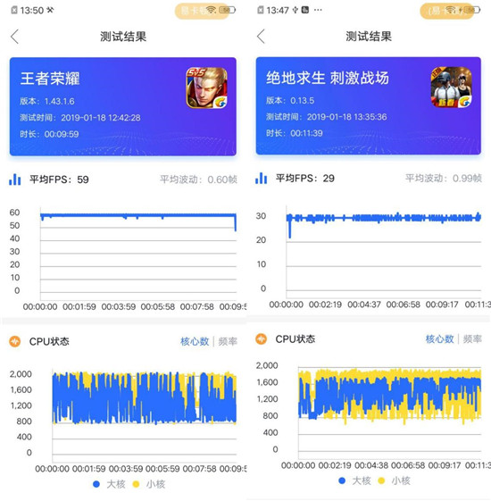 為了更準確地分析后臺數據,我們采用了游戲幀率測試軟件快否分別進行檢測。根據最終結果來看,當運行《王者榮耀》時,幀率可謂是非常穩(wěn)定,平均幀率保持在59幀,平均波動也僅為0.6幀;而面對運行條件更為苛刻的《刺激戰(zhàn)場》,Z3i標準版也交出了29幀的出色成績,0.99幀的平均波動甚至讓玩家看到了旗艦機的影子。由此不難看出,vivo Z3i標準版是有實力勝任主流大型游戲的。