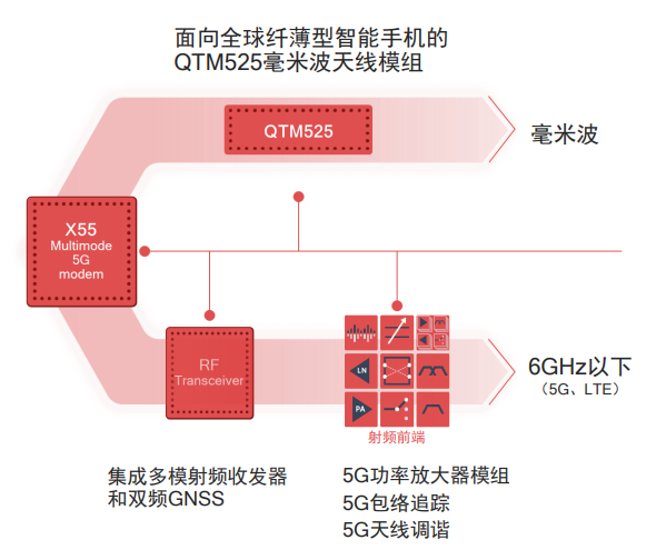 對5G手機(jī)制造商來說,高通X55 5G平臺還有著另一項優(yōu)勢,那就是高通還配合驍龍X55同步推出了相配套的射頻前端方案,極大地簡化了5G手機(jī)的開發(fā)難度。