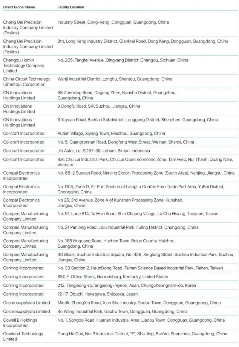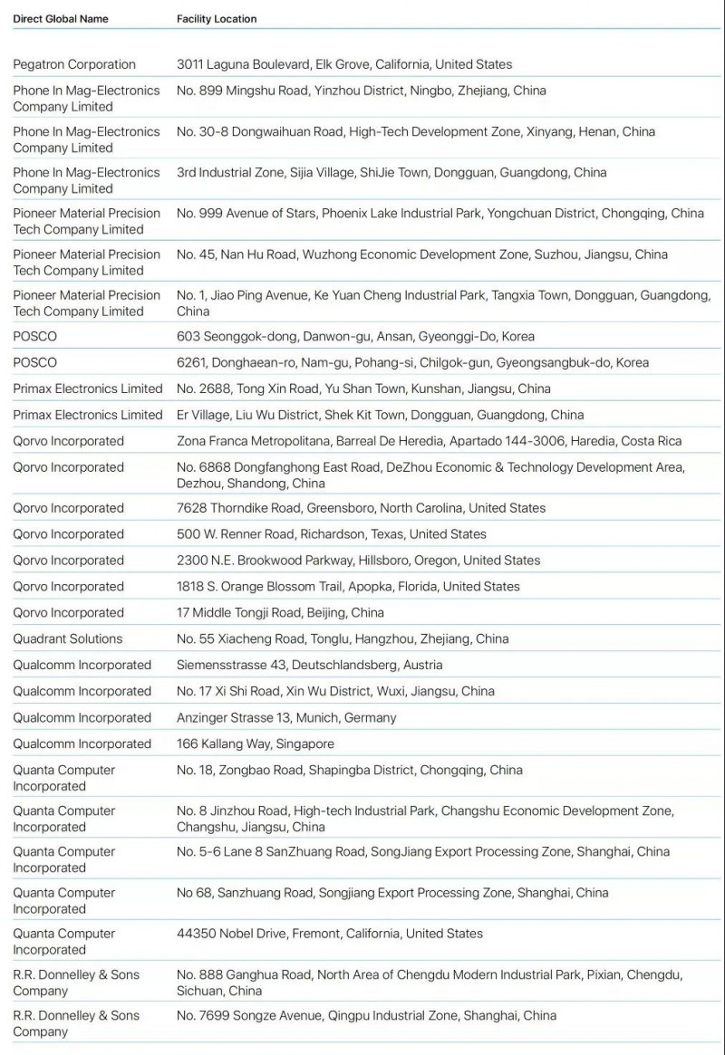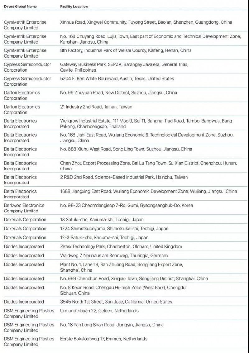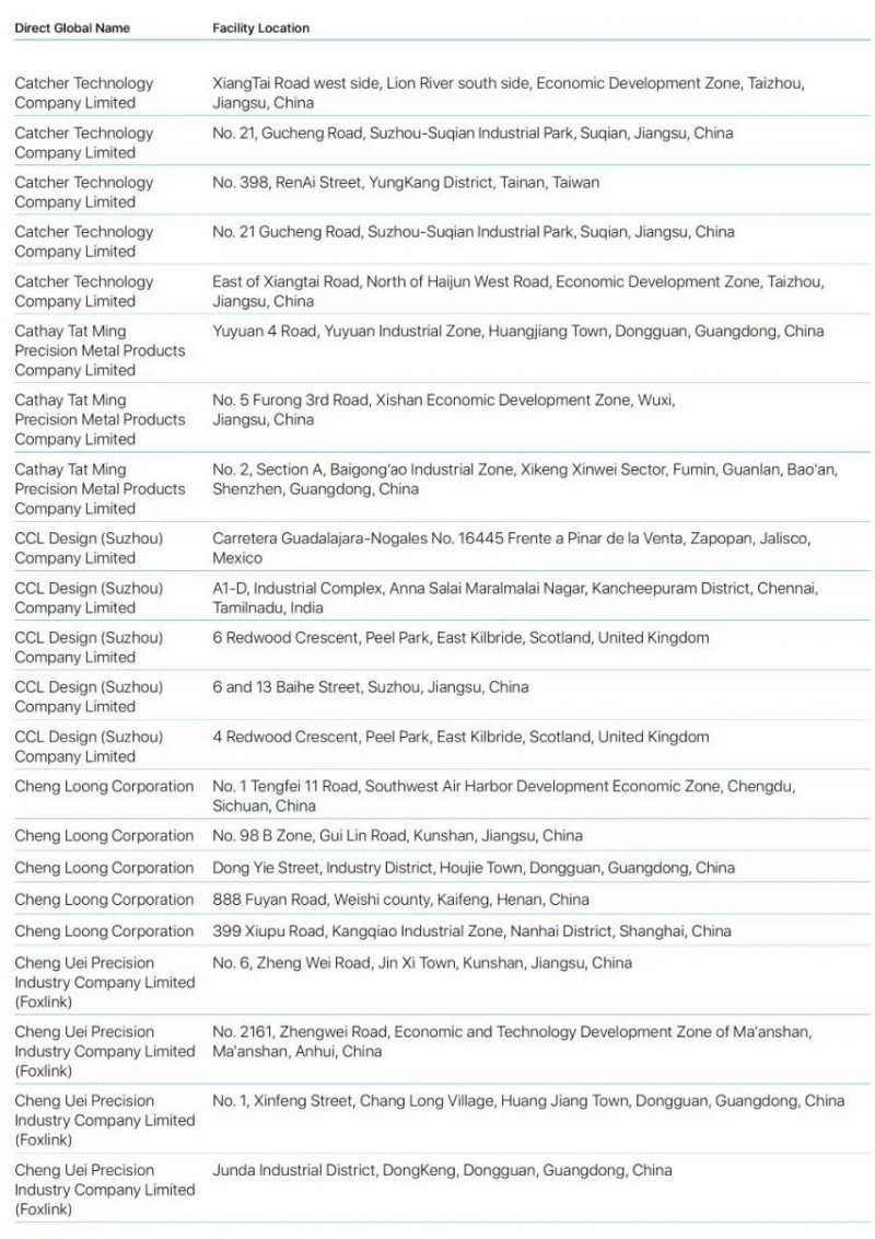蘋果2019年公布最新前200家供應(yīng)商名單蘋果2019年公布最新前200家供應(yīng)商名單
