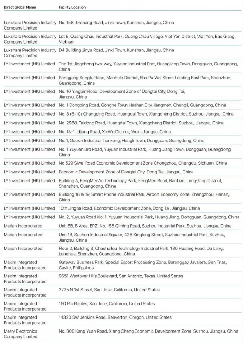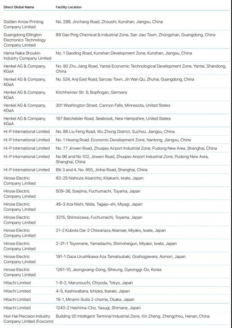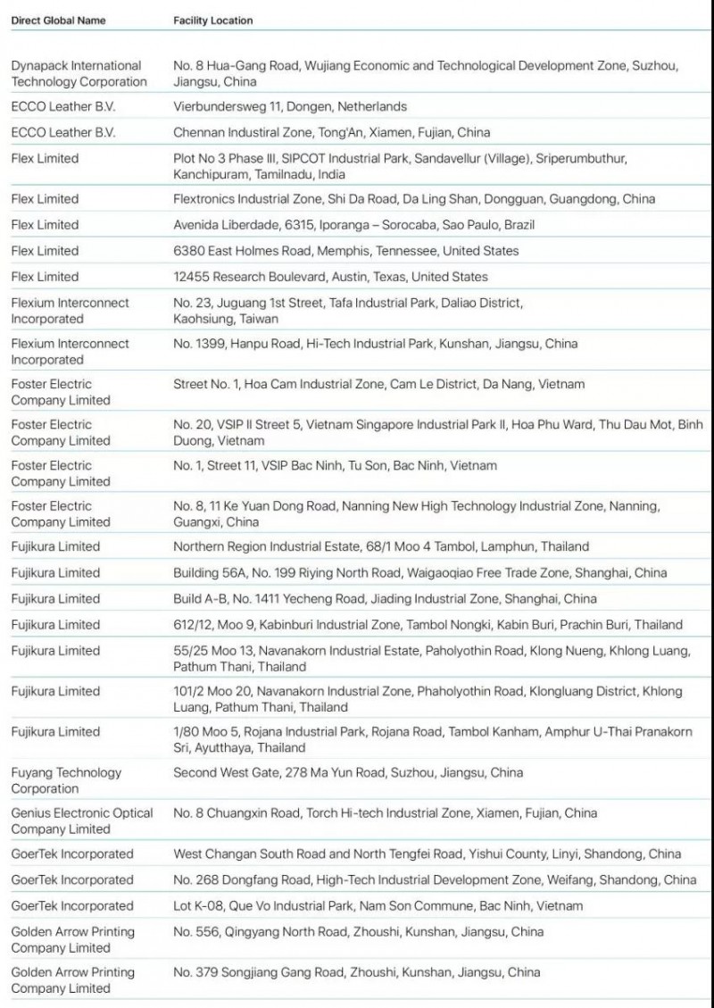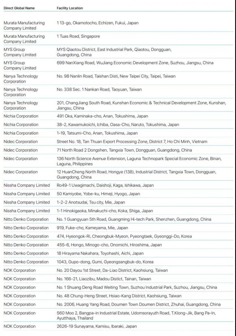 蘋果2019年公布最新前200家供應(yīng)商名單蘋果2019年公布最新前200家供應(yīng)商名單