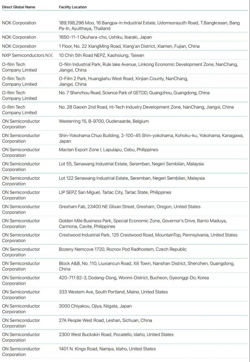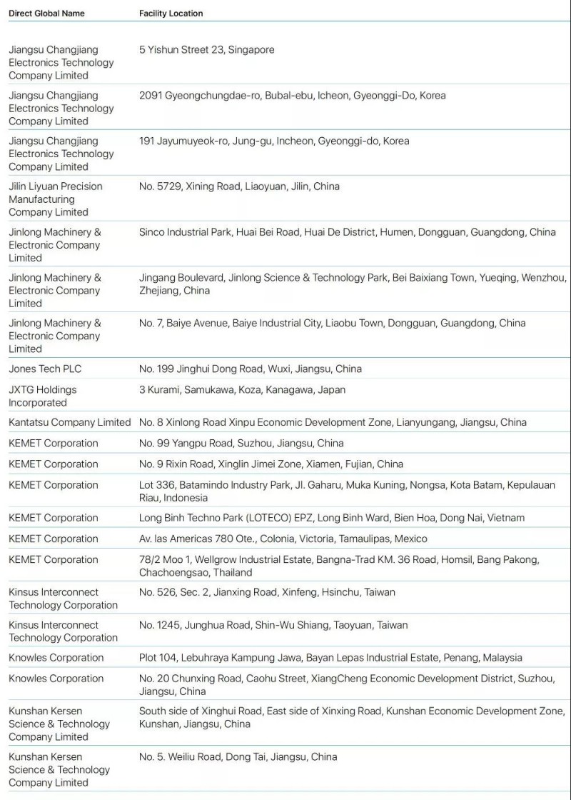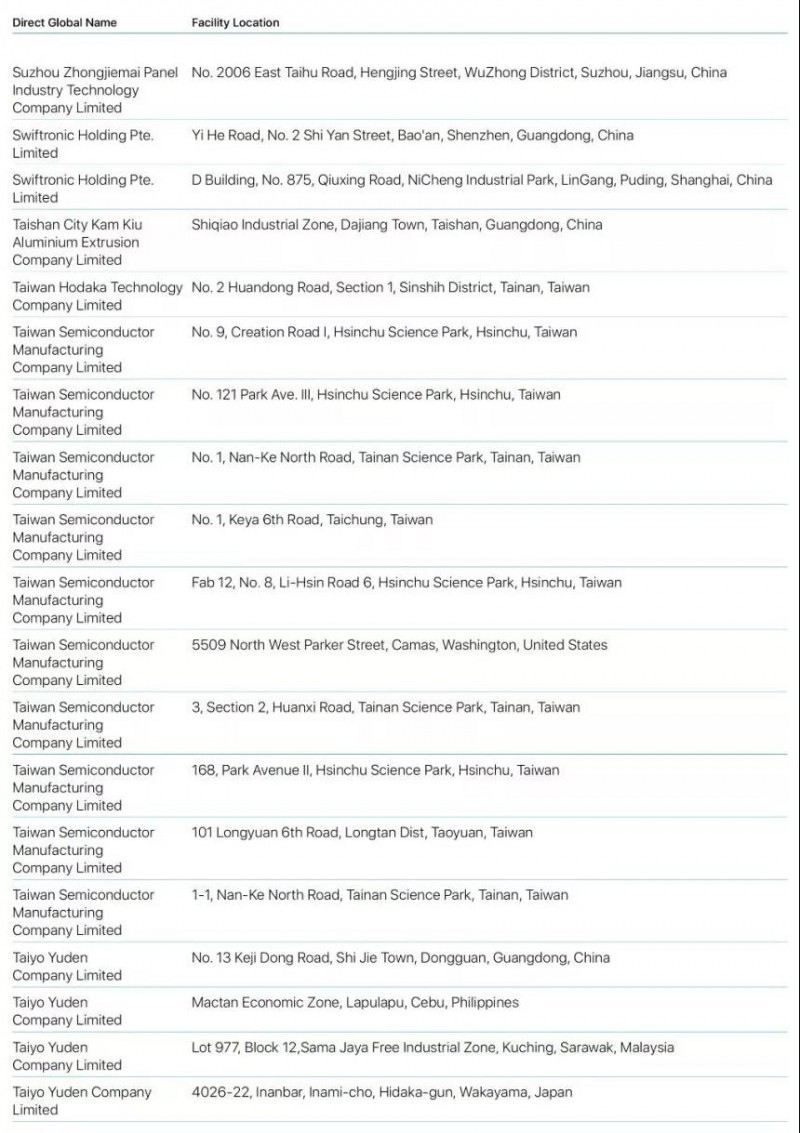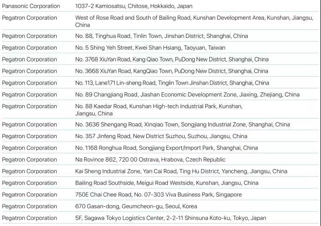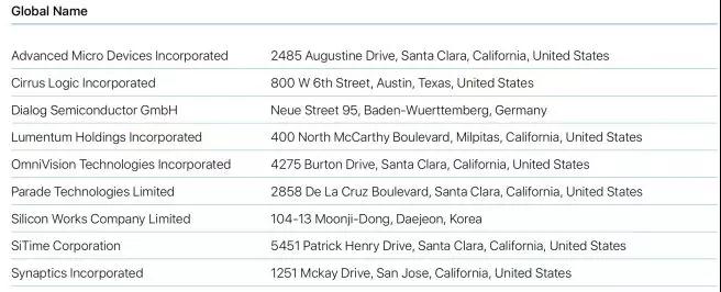 Bumchun Precision Company Limited:韓國廠商,此前為蘋果提供音響模塊及其他組件。原部分年份沒有出現(xiàn)在名單中。