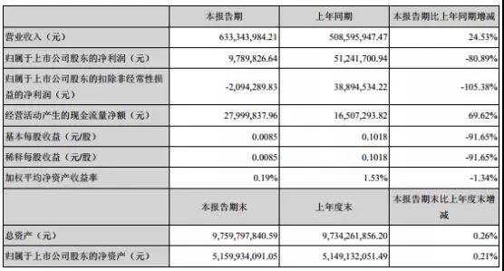 并且這種不利影響進一步蔓延到了2019年第一季度,據(jù)其該季度報告顯示,其營收為6.33億元,同比增長24.53%,但是凈利潤卻只有978萬元,與上年同期的5124萬元相比同比下降80.89%,此外,其扣非凈利則為虧損209萬!