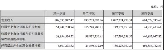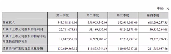 但細看新綸科技2018年的年報可以發(fā)現(xiàn),在前三季度中,新綸科技的業(yè)績增長一直都很理想,數(shù)據(jù)顯示,2018年第一季度、二季度、三季度凈利潤與2017年相比,分別同比增長125.13%、105.62%、210.05%,由此可見,新綸科技2018年前三季度的業(yè)績非常好,但是,到了第四季度卻突然陷入虧損,該季度的凈利潤為虧損493萬元!