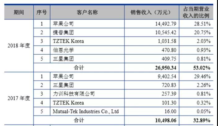 天準科技的客戶都是國際知名手機品牌,其中蘋果和三星是其業(yè)務收入的主要來源。
