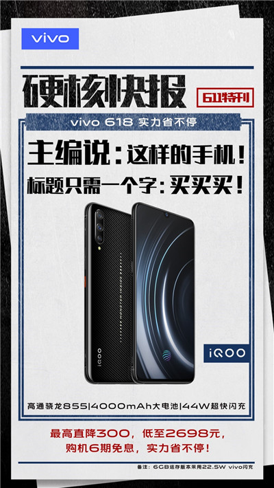 vivo 618超級(jí)品類日期間,以“生而強(qiáng)悍”著稱的硬核機(jī)型iQOO,最高直降300元,低至2698元,并支持購(gòu)機(jī)享6期免息,讓更多消費(fèi)者體驗(yàn)極致性能同時(shí),真正演繹硬核王者風(fēng)范。