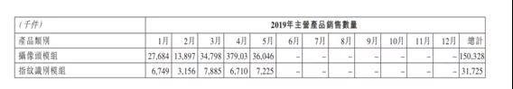 實(shí)際上,5月份丘鈦科技主營產(chǎn)品銷售數(shù)量的披露,也就意味著2019年1—5月丘鈦科技的攝像頭模組銷量數(shù)據(jù)也隨之出爐。根據(jù)2019年5月份的披露的數(shù)據(jù)顯示,1—5月丘鈦科技的攝像頭模組銷量約為1.5億件。