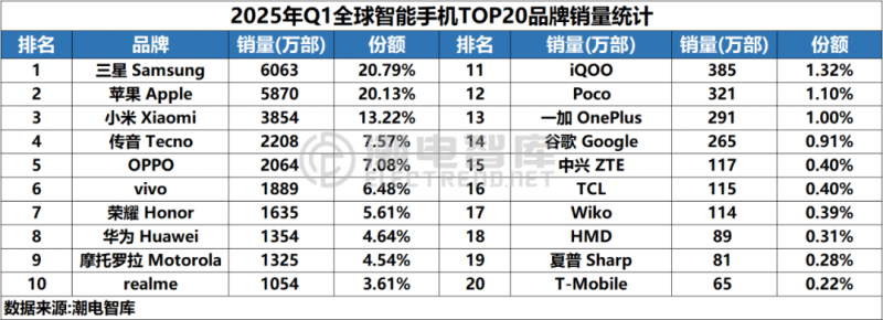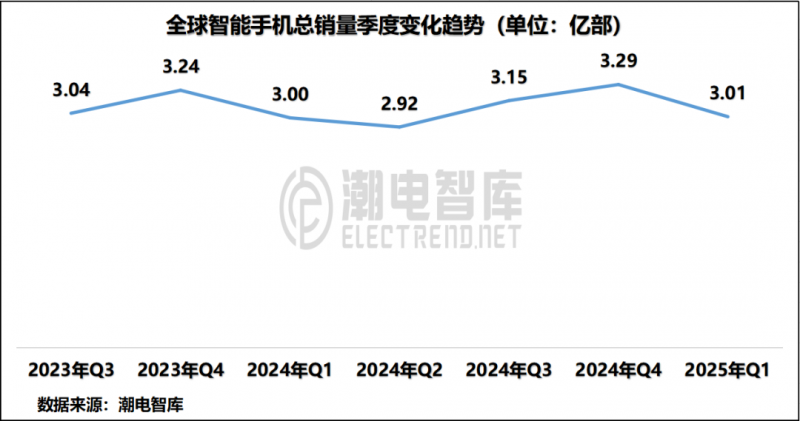 2025年Q1全球智能手機市場同比增長0.3%,市場符合潮電智庫預(yù)測,廠商們?yōu)閼?yīng)對美國政府對中國進口商品加收關(guān)稅增加了產(chǎn)量。