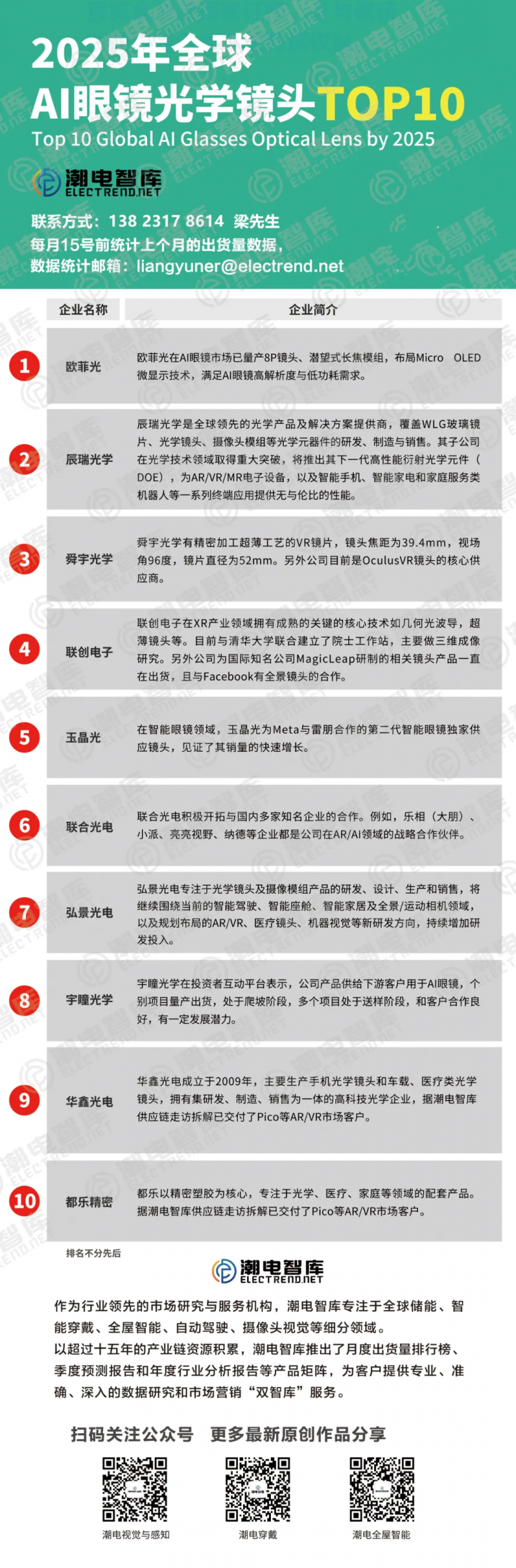 為此潮電智庫整理了目前AI眼鏡市場主流的光學(xué)鏡頭廠商,因光學(xué)行業(yè)較為廣泛,如有遺漏廠商,歡迎聯(lián)系潮電智庫進(jìn)行溝通。