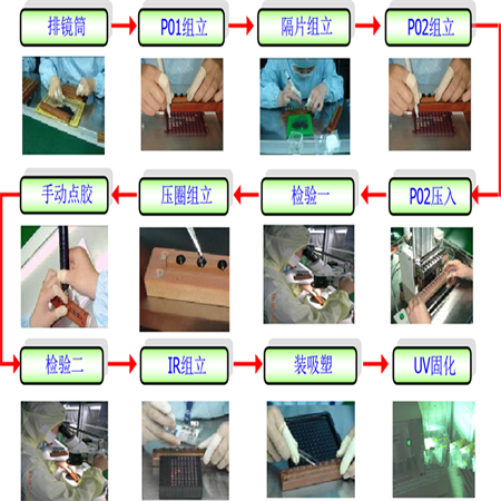 組裝環(huán)節(jié)是按照順序逐一將加工完成的鏡片、隔片、壓圈等部件完成裝配,并實(shí)現(xiàn)光學(xué)性能的過程,目前主要通過自動(dòng)化方式實(shí)現(xiàn)組裝。