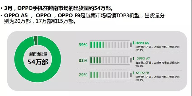 今年3月,OPPO手機在中國市場的出貨量約537萬部。其中,OPPO A7、OPPO A5、OPPO A7X是中國市場暢銷TOP3機型,出貨量分別為189萬部、113萬部和75萬部。