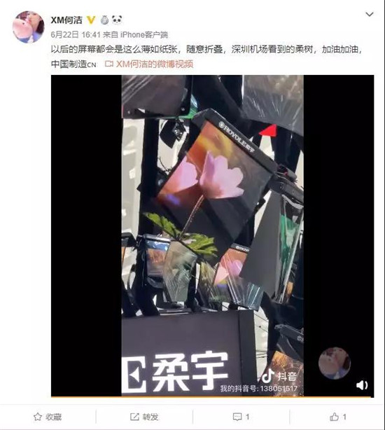 在深圳機(jī)場(chǎng),柔宇科技不僅僅展示了“柔樹”,同時(shí)也展示了“柔葉”,其占地面積小,且方便移動(dòng),可便捷地播放視頻和圖片,可應(yīng)用于家居或商業(yè)場(chǎng)所。