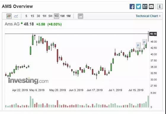 因智能手機(jī)市場(chǎng)對(duì)其3D光學(xué)感測(cè)器需求強(qiáng)勁,蘋果供應(yīng)商AMS今年第二季度的營(yíng)收,優(yōu)于預(yù)期,與此同時(shí),由于智能手機(jī)需求恢復(fù)其上調(diào)Q3財(cái)報(bào),昨日股價(jià)飆升逾8%,創(chuàng)九個(gè)月以來(lái)新高。