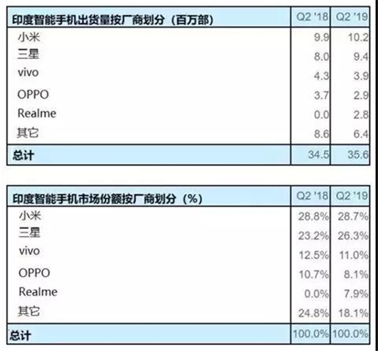 早前Strategy Analytics發(fā)布的最新研究報(bào)告還指出,2019年Q2印度智能手機(jī)出貨量年增長(zhǎng)3%達(dá)到3560萬(wàn)部。小米仍位居第一,但復(fù)蘇的三星正在縮小與小米的差距排名第二。但隨著Realme取得重大進(jìn)展,vivo和OPPO市場(chǎng)份額減少。
