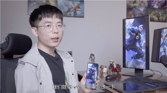 游戲作曲老炮曾怡展示了自己的工作室,介紹了游戲中音樂(lè)、特殊聲效的制作過(guò)程,測(cè)試了iQOO Neo3的雙揚(yáng)聲器、音效表現(xiàn)效果以及立體聲效。他評(píng)價(jià)Neo3的聲音效果層次清晰、頻響比較均衡、細(xì)節(jié)比較出色,有空間、有相位,立體聲效果優(yōu)異,游戲音頻方向感明顯,音效很不錯(cuò)。