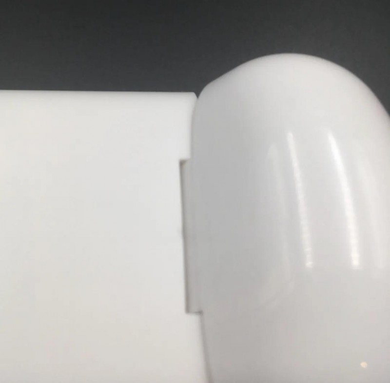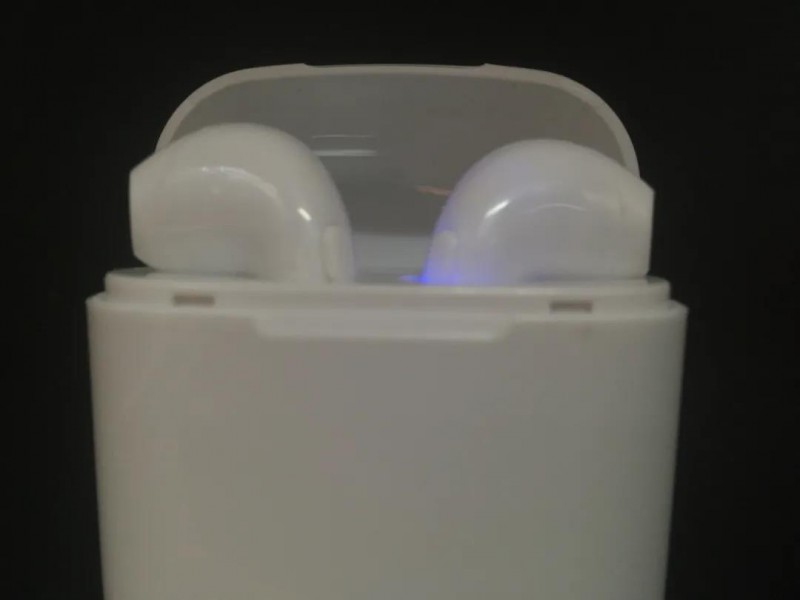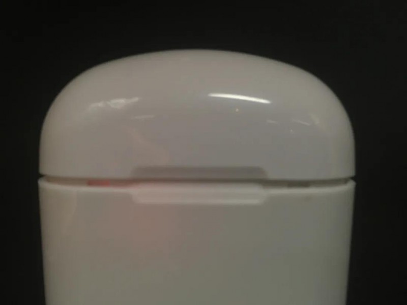 兩個耳機比Air pods大了一圈,尤其是耳機柄設(shè)置的小小呼吸燈,非常復(fù)古。夸張的是耳機內(nèi)的呼吸燈可以透過外殼閃爍,甚至于透過充電倉也能看到閃爍的“跑馬燈”。充電倉內(nèi)部采用了類似Air pods的設(shè)計,更驚奇的發(fā)現(xiàn)在充電槽內(nèi)。不像多數(shù)TWS耳機內(nèi)有磁吸觸極或頂針充電,i7S內(nèi)充電槽竟然是類似3.5mm三段式的OMTP,看似有1cm長的接口,耳機充電時接入接口。十分簡陋。