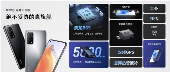 作為K30系列的「雙至尊」之一,Redmi K30S至尊紀(jì)念版自然擁有“怪獸般“的強(qiáng)勁性能。搭載高通驍龍865旗艦處理器,支持SA和NSA雙模5G網(wǎng)絡(luò)。配合最新一代LPDDR5內(nèi)存和UFS 3.1存儲(chǔ)組合,無(wú)論是日常使用還是大型游戲都能流暢運(yùn)行不卡頓。不僅有頂級(jí)的旗艦性能,還擁有完善的旗艦體驗(yàn)。