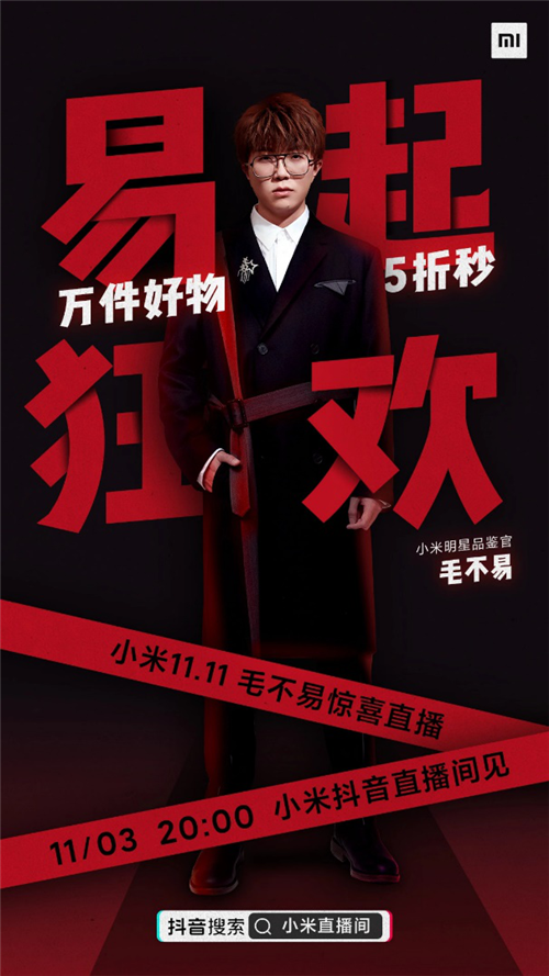 據(jù)悉11月3日毛不易空降小米直播間,用戶登陸抖音搜索“小米直播間”參與互動,萬件5折好物搶到手軟。
