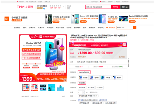 目前Redmi 10X在天貓平臺搶券后,Redmi 10X 5G 6+128GB版本低至1299元。Redmi 10X 4G明月灰已經(jīng)開售,4+128GB開門紅到手價(jià)999元。