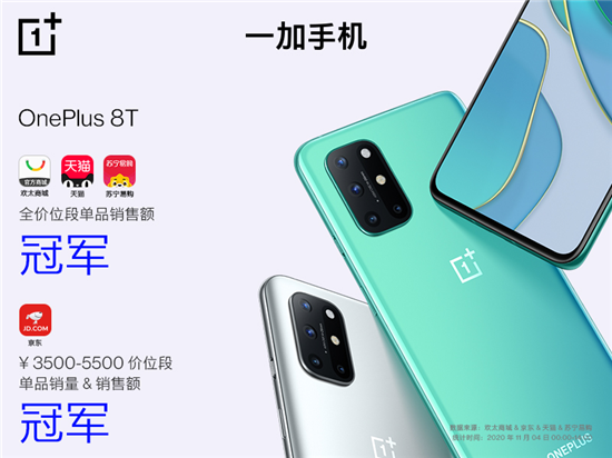 11月4日,一加手機(jī)公布京東天貓品牌日戰(zhàn)報(bào),屏幕超旗艦一加8T憑借著強(qiáng)勁的產(chǎn)品實(shí)力斬獲了多個(gè)平臺(tái)銷售額冠軍,獲得歡太商城、天貓、蘇寧易購(gòu)的全價(jià)位段單品銷售額冠軍、京東3500-5500元價(jià)位段單品銷量&銷售額雙料冠軍。
