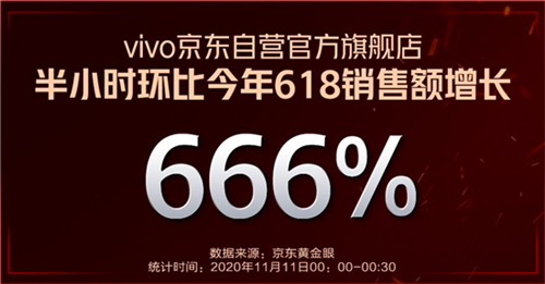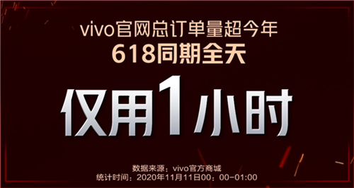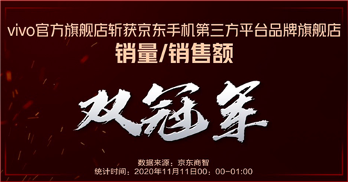 vivo官方旗艦店斬獲京東手機第三方平臺品牌旗艦店銷量、銷售額雙冠軍頭銜;vivo官方僅用時1小時,總訂單量超今年618同期全天。