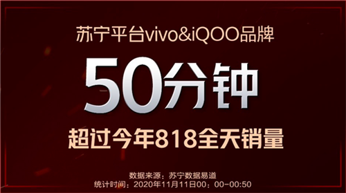 今天0點,雙十一大促正式拉開帷幕,vivo iQOO的樂購新品、鉅惠優(yōu)享、爆品風暴、冰點價格等促銷活動也在全網(wǎng)如期上線。經(jīng)過一段時間的熱賣,vivo iQOO再次用實力和品質交出超級戰(zhàn)報。根據(jù)相關數(shù)據(jù)顯示,vivo天貓官方旗艦店開售僅2分鐘,銷售額就超過今年618全天;vivo京東官方自營旗艦店,前半小時環(huán)比今年618銷售額增長666%;蘇寧平臺,vivo iQOO品牌50分鐘就超過今年818全天銷量。