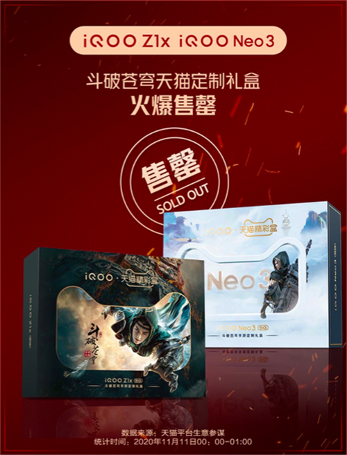 同時,iQOO Z1x、iQOO Neo 3斗破蒼穹天貓定制禮盒火爆售罄。